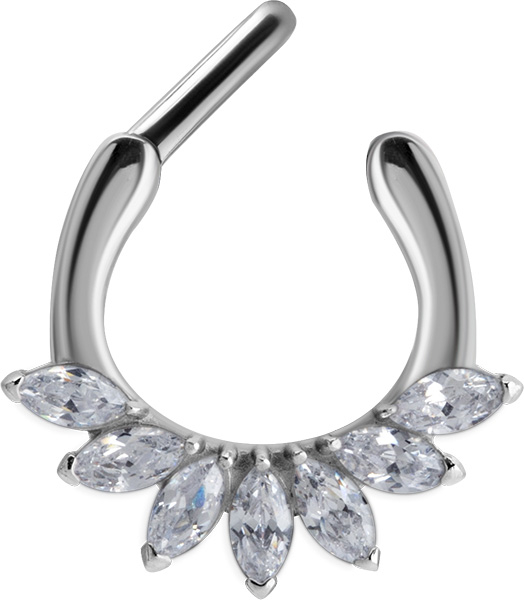 SS 316 SEPTUM CLICKER WITH MARQUISE ZIRCONIA